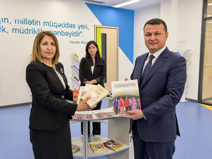 Bildirilib ki, onlar əvvəlcə Füzuli şəhərinə gediblər. Orada Mirzə Uluqbəy adına 1 nömrəli tam orta məktəbi ziyarət ediblər. Bu məktəb Özbəkistan Prezidenti Şavkat Mirziyoyev tərəfindən özbək xalqı adından hədiyyə olaraq inşa etdirilib. Nümayəndə heyətinə məktəbin fəaliyyəti haqqında məlumat verilib. Qonaqlar məktəbə kitablar təqdim ediblər.