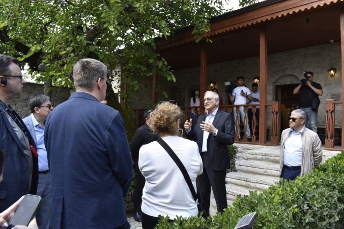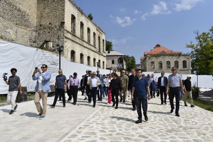 Azərbaycan Prezidentinin Şuşa rayonunda xüsusi nümayəndəsi Aydın Kərimov qonaqlara şəhərin tarixi, işğal dövründəki vəziyyəti və şəhər işğaldan azad olunandan sonra burada aparılan bərpa-quruculuq işləri barədə məlumat verib. Bildirib ki, 30 ilə yaxın işğal dövründə Şuşa şəhərindəki tarixi binalar, məscidlər, abidələr erməni vandalizminə məruz qalıb. Şuşa işğaldan azad edildikdən sonra burada genişmiqyaslı bərpa-quruculuq işlərinə başlanılıb. İnfrastrukturun qurulması ilə yanaşı, Şuşada şəhərin tarixi simasının, tarix və mədəniyyət abidələrinin bərpası da həyata keçirilir.
