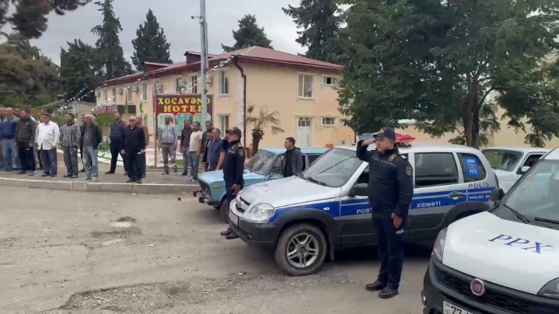 Xocavəndin Hadrut qəsəbəsində sükut dəqiqəsi zamanı nəqliyyatın hərəkəti dayanıb, avtomobillərdən səs siqnalları verilib. Hər kəs şəhid əsgər və zabitlərimizin xatirəsinə dərin ehtiramlarını ifadə ediblər.