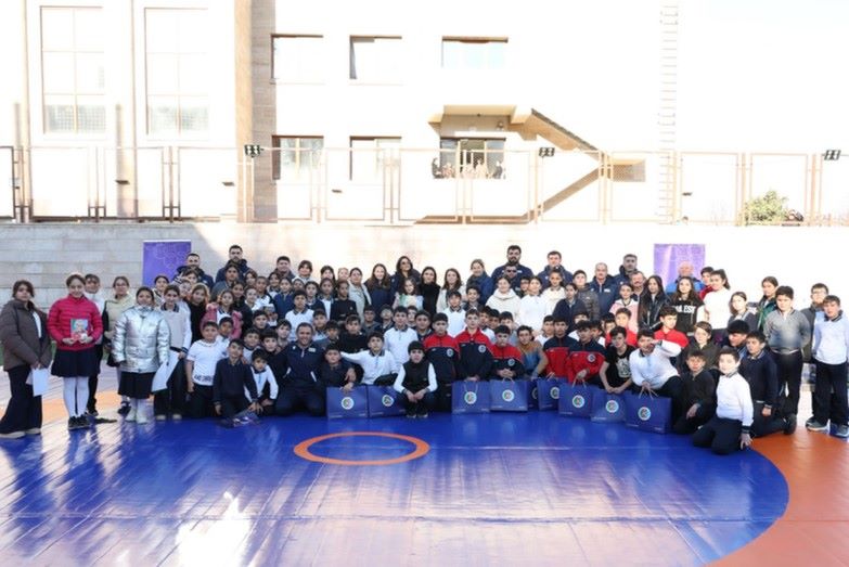 Nümayəndə heyəti bu gün Xankəndi şəhərində olub. Qonaqlar əvvəlcə Nizami Gəncəvi adına 4 saylı orta məktəbə baş çəkiblər. Eldəniz Əzizli, Rafiq Hüseynov, Mariya Stadnik, Rəsul Çunayev kimi tanınmış güləşçilər məktəblilər tərəfindən böyük coşğu və maraqla qarşılanıb. Tanınmış güləşçilərlə şəkil çəkdirən, onlardan avtoqraf alan yeniyetmələr məktəbin stadionunda salınmış güləş xalçası üzərində müəyyən güləş elementləriylə tanış olublar.