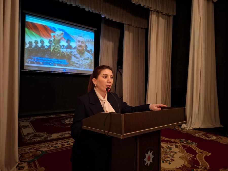 Füzuli Rayon İcra Hakimiyyəti başçısı Aparatının İctimai-siyasi və humanitar məsələlər sektorunun müdiri Ülkər Bayramlı çıxış edərək, əsası Ulu Öndər Heydər Əliyev tərəfindən qoyulan uğurlu ordu quruculuğu siyasətindən, Müzəffər Ali Baş Komandan cənab İlham Əliyevin rəhbərliyi ilə şanlı ordumuzun qazandığı Böyük Zəfərdən bəhs etdi. Ülkər Bayramlı qəhrəman şəhidlərimizin və qazilərimizin döyüş yollarının gənc nəslin vətənpərvərlik ruhunda tərbiyə olunması üçün ən tutarlı mənbə olduğunu diqqətə çatdırdı, Allahdan şəhidlərinmizə rəhmət, qazilərimizə sağlamlıq dilədi.