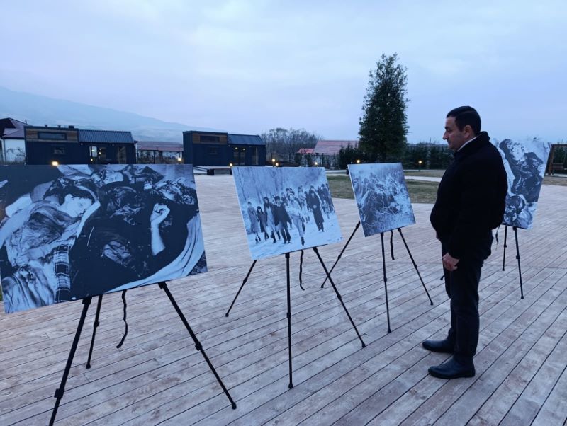 Fləş-mob çərçivəsində Xocalı dəhşətini əks etdirən fotosərgi də təşkil olunub. Tədbir şagirdlərin “Xocalı azaddır!” və “Xocalını unutmadıq!” şüarları səsləndirərək bu gün yenidən qurulan, uşaq gülüşləri ilə dolan, doğma sakinlərinin nəfəsi ilə isinən Xocalıya həsr olunmuş “Ay Xocalı” mahnısının sədaları altında düzülərək, “Xocalı” sözünü yazıb, qurbanları yad etməklə başa çatıb. (AZƏRTAC)