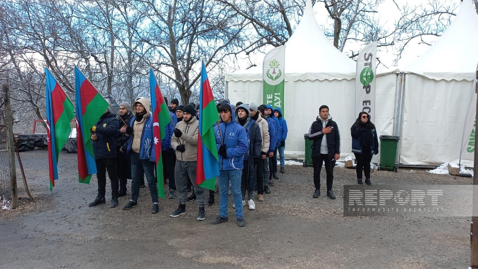 Eyni zamanda ekofəallar yolun hər iki tərəfində, hərəkətə maneə törətmədən üzərində Azərbaycan, rus və ingilis dillərində yazılmış plakatlar qaldırıb, şüarlar səsləndirirlər.