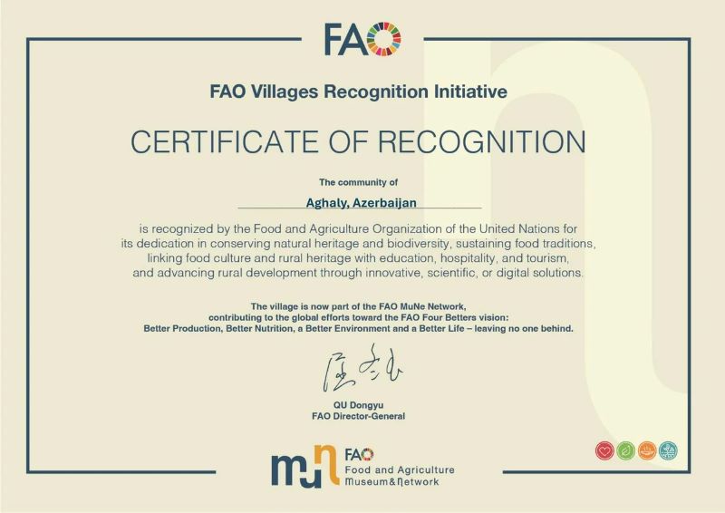 Bildirilib ki, Ağalı təbii irsin qorunması, biomüxtəlifliyin dəstəklənməsi və dayanıqlı kənd inkişafına verdiyi töhfəyə görə nümunəvi kənd icması kimi tanınıb. (Report)