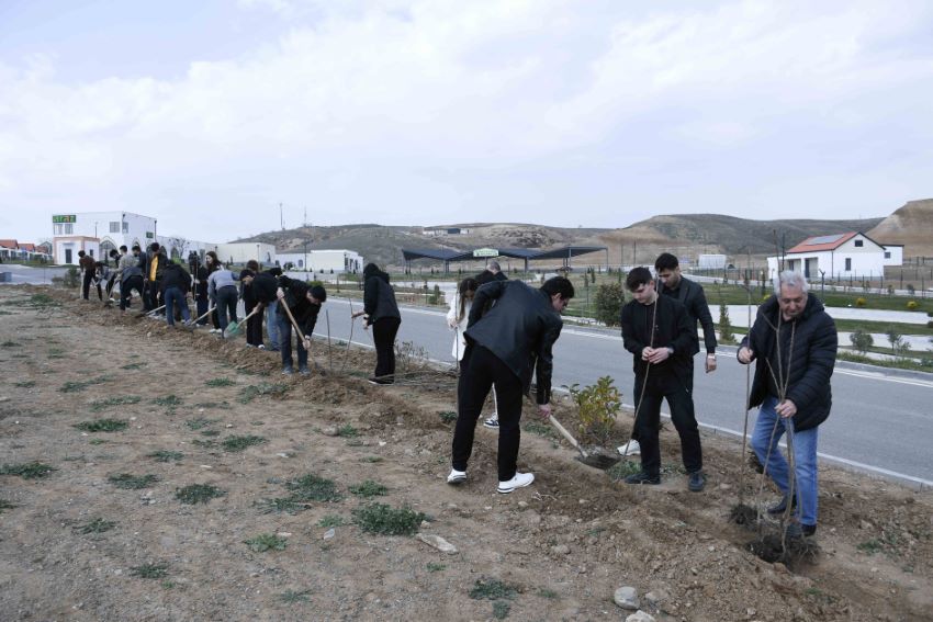 Ağacəkmə aksiyasında iştirak edən ADAU-nun professor-müəllim heyəti və tələbələr əvvəlcə kəndin infrastrukturu ilə tanış olublar.