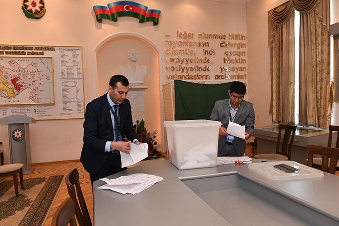 Seçki prosesinin sonunda səslər komissiya üzvləri tərəfindən hesablanıb. Seçkilərin şəffaflığını təmin etmək məqsədi ilə şəffaf seçki qutuları qoyulub, səsvermə prosesi başlanandan sona qədər kamera vasitəsi ilə qeydə alınıb. 171 bülleten yararlı, 1 bülleten yararsız hesab olunub.