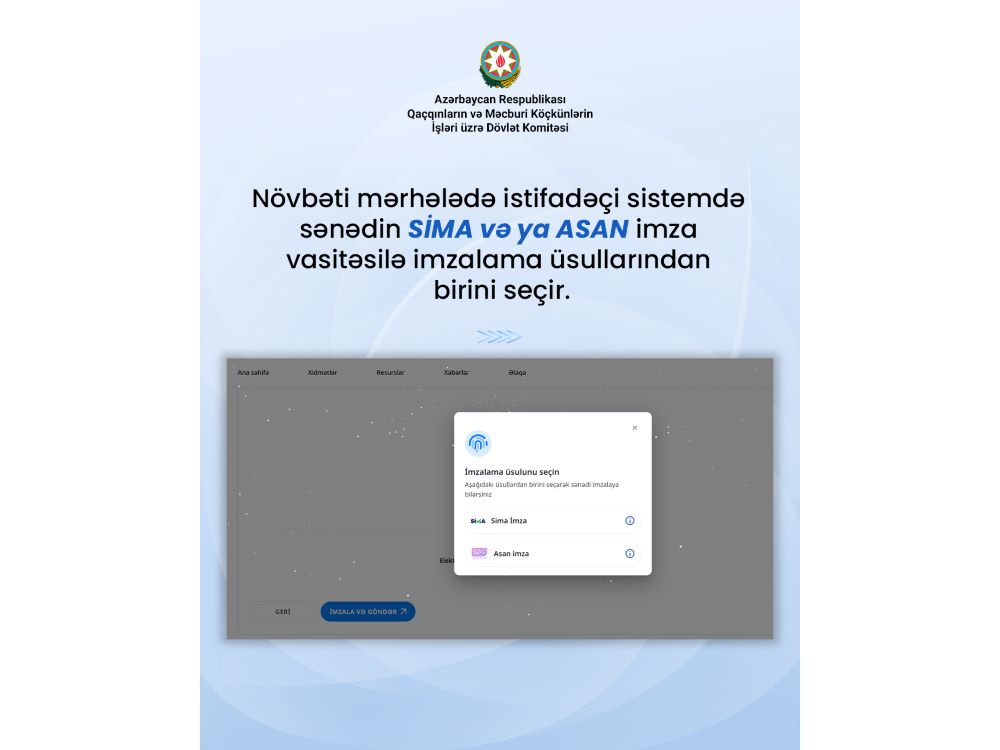 Qeyd edək ki, indiyədək ərizə, müraciət, təkliflərlə bağlı vətəndaşlar poçt, elektron resurslar ( elektron poçt, Dövlət Komitəsinin rəsmi facebook və instagram hesablarının mesaj bölməsi), yaxud müvəqqəti qeydiyyatda olduqları rayonlar üzrə komitənin nümayəndəlikləri vasitəsi ilə komitəyə müraciət edirdilər. “MyGov” platformasına inteqrasiya vətəndaşlara, heç bir yerə getmədən, internet üzərindən müraciət etmək və cavab almaq imkanı verir. Bunun üçün “myGov” portalında şəxsi kabinetə 5 üsuldan birini seçməklə ( “İdentifikasiya nömrəsi ilə”, “SİMA Rəqəmsal İmza”, “SİMA Token (Elektron İmza)”, “ASAN İmza”, “Elektron İmza”, “BSXM – Elektron İmza”) daxil olmaq mümkündür.