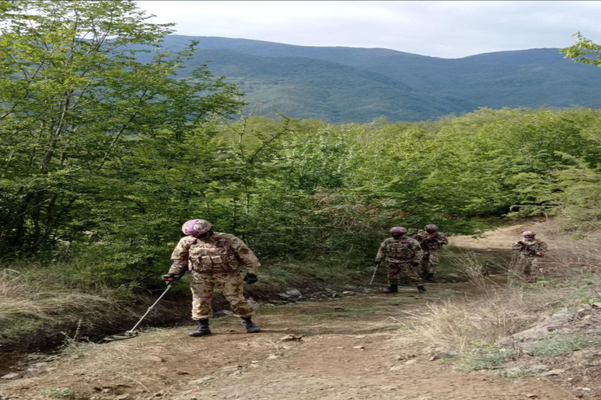 "Əməkdaşlar tərəfindən Vətən torpaqları qarış-qarış yoxlanılır. Aşkarlanan mina və digər təhlükələr zərərsizləşdirilir", məlumatda deyilir. (APA)