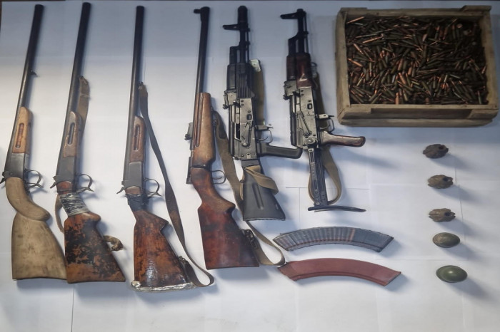 Daxili İşlər Nazirliyinin mətbuat xidmətindən verilən xəbərə görə, polis əməkdaşlarının keçirdikləri tədbirlərlə martın 13-də Xankəndi şəhəri ərazisindən 25 ədəd müxtəlif markalı avtomat silahı, 1 pulemyot, 3 tapança, 1 tüfəng, 11 qumbara, 10 alışdırıcı, 38 patron darağı, 7575 ədəd müxtəlif çaplı patron və digər sursatlar aşkar olunaraq götürülüb. (APA)