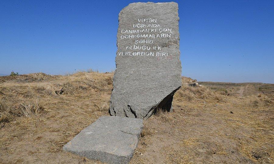Şəhidlərimizin xatirəsinə bir abidə – qaya parçası isə Füzuli rayonunun Qaraxanbəyli kəndinin yaxınlığında qoyulub.