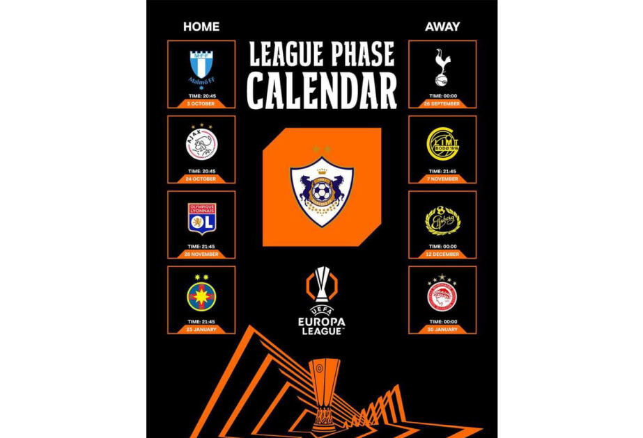 Azərbaycanın turnirdəki yeganə təmsilçisi "Qarabağ"ın da oyunlarının vaxtı və yeri bəlli olub.