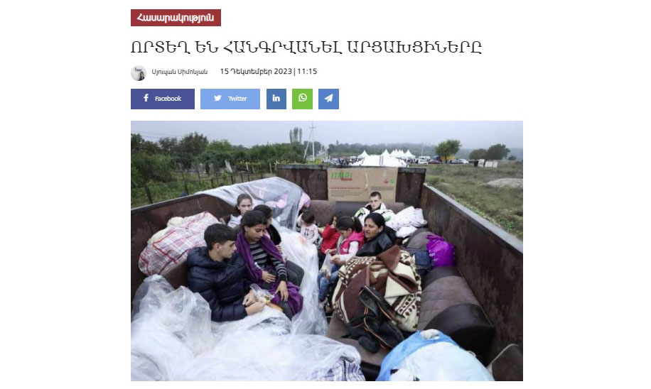 Ermənistandakı Qarabağ klanının özünün sosial bazasının gücləndirilməsi üçün şayiələr yayaraq Qarabağdakı ermənilərin kütləvi şəkildə Ermənistana köçməsinə nail olması erməni mətbuatında gündəmdə olan mövzulardandır. "Hraparak"ın bu günkü yayımında xəbər verilir ki, onların müxtəlif bölgələrdə məskunlaşdırılması üçün şənbə günü artıq istirahət deyil, iş günü sırasına daxil edilib. Hökumət tapşırıb ki, Qarabağdan köçən ermənilərin əksəriyyəti İrəvandan uzaq ərazilərdə, daha çox isə Azərbaycanla sərhəddə yerləşdirilsinlər. Agentlik əlavə edib ki, artıq Göyçənin kəndlərindəki boş azərbaycanlı evlərində beş minə yaxın köçkün yerləşdirilib və bu proses davam edir. Ümumiyyətlə isə statistika komitəsinin məlumatına görə, artıq 73 min 540 nəfər məskunlaşdırılıb.