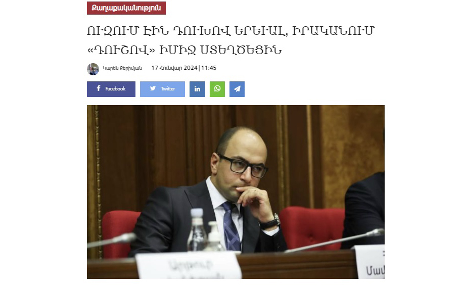 Paşinyanın mövqeyinə də sağlam düşüncə ilə deyil, məhz kreslo hərisi kimi münasibət sərgiləyən bu deputat baş naziri "duxlu oğlan" deyil “duşlu oğlan” adlandırıb və deyib ki, o, soyuq duş altında nə qədər qalsa da ağlı başına gəlməyəcək.