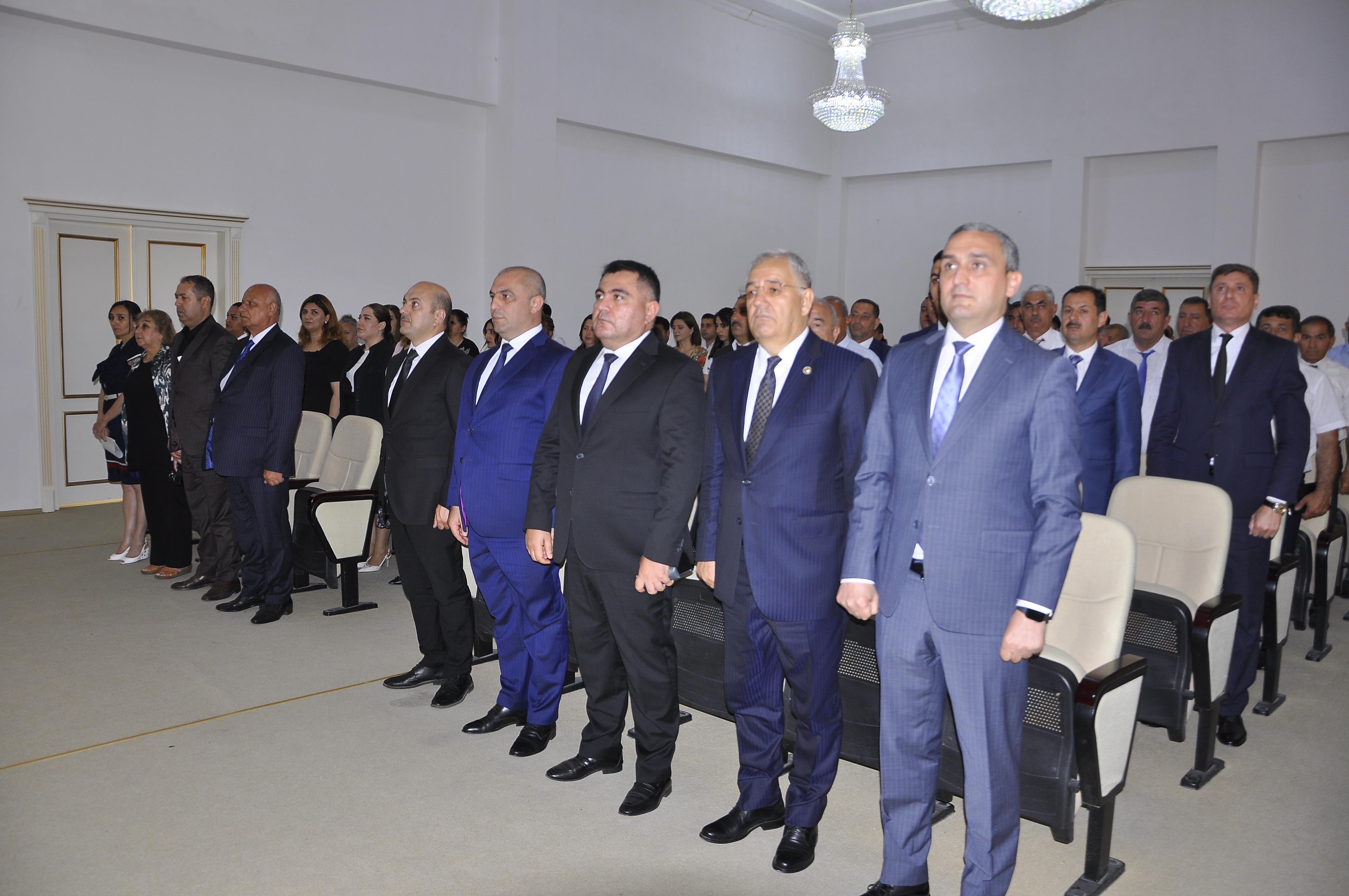 Əvvəlcə Ulu öndər Heydər Əliyevin mərkəzi meydanda ucaldılmış abidəsi ziyarət edilib, önünə tər gül dəstələri düzülüb. Sonra tədbir iştirakçıları Heydər Əliyev Mərkəzinin foyesində Ümummilli lider Heydər Əliyevin fəaliyyətinin müxtəlif dövrlərini əks etdirən fotostendlə tanış olublar. Ulu öndər Heydər Əliyevin və respublikamızın ərazi bütövlüyü uğrunda şəhid olmuş Vətən övladlarının əziz xatirəsi bir dəqiqəlik sükutla yad edilib və Dövlət Himni səsləndirilib.