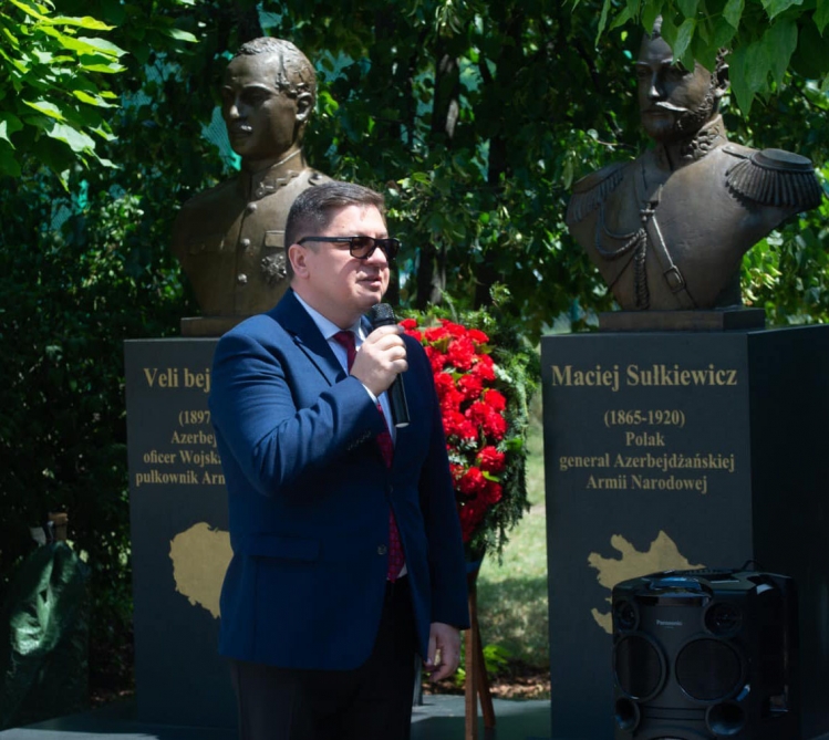 Sonra Varşavanın Yuzef Polinski parkında polkovnik Vəli bəy Yadigarın və general Maçey Sulkeviçin xatirəsinə ucaldılmış abidənin önünə əklillər qoyulub.