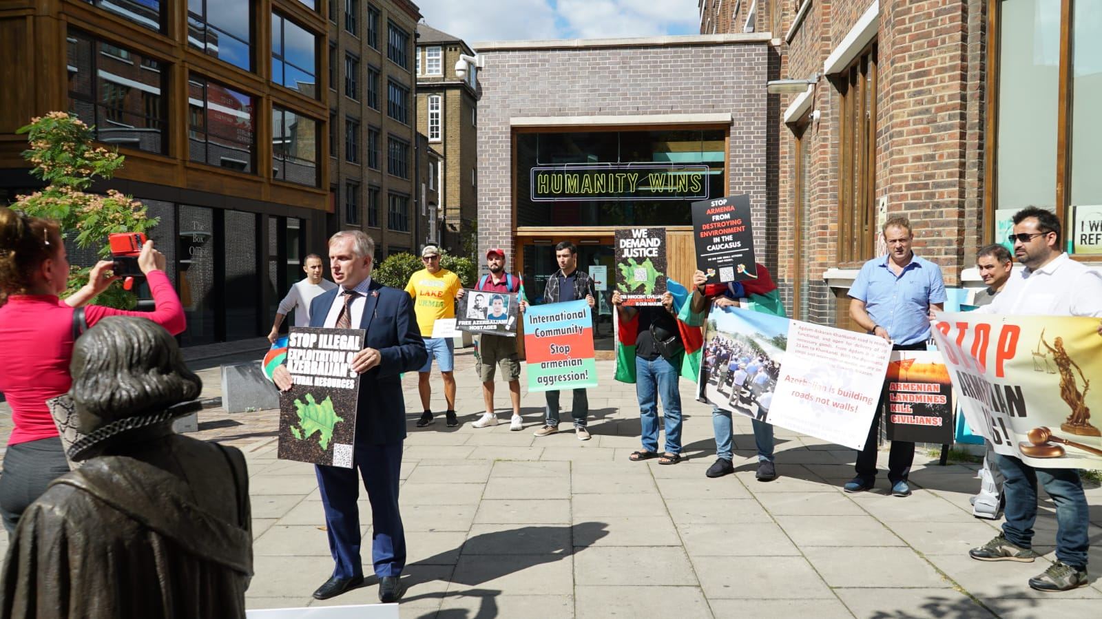Aksiya ilə maraqlanan londonluların diqqəti 30 il ərzində ölkəmizə qarşı təcavüzkar və qəsbkar siyasət yürütmüş Ermənistanın hərbi və ekoloji cinayətlərinə cəlb edilib. Ermənistan silahlı qüvvələri tərəfindən Azərbaycan ərazilərində basdırılmış minaların insan həyatını təhdid etdiyi, 2020-ci il müharibəsindən indiyədək Azərbaycanda mina qurbanlarının sayının 303 nəfərə çatdığı, rəsmi İrəvanın xəritələri təqdim etməməsinin qanun pozuntusu olduğu, azərbaycanlıların insan haqlarını kobudcasına pozduğu nəzərə çatdırılıb.
