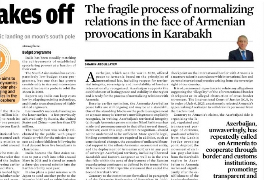 Ermənistan ilə Azərbaycan arasında bir neçə yüksək səviyyəli görüşün keçirildiyinin vurğulandığı yazıda diqqətə çatdırılır ki, Ermənistan beynəlxalq aləmə bölgədə mövcud vəziyyətlə bağlı təhrif olunmuş məlumatlar ötürür. Burada əsas məqsəd sülh prosesinə zərbə vurmaq, reinteqrasiya məsələlərini ləngitməkdir. Bu isə ümumilikdə bölgədə yeni böhran vəziyyəti yaratmaqla