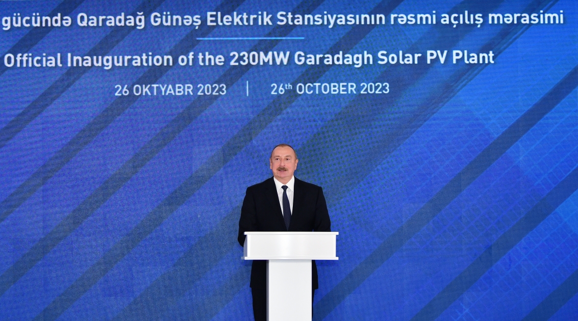 “Bu gün biz nisbətən qısa zamanda, təxminən il yarımdan bir qədər çox müddət ərzində Abşeron yarımadasının bu boş hissəsinin yaşıl enerji mənbəyinə çevrildiyini görəndə çox qürur duyuruq. Bu, əlamətdar nailiyyətdir”, - deyə dövlətimizin başçısı Stansiyanın rəsmi açılış mərasimində çıxışı zamanı bildirib.