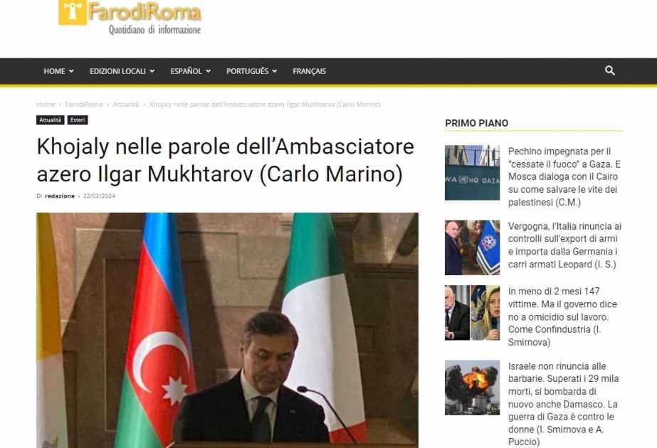 Məqalədə Azərbaycanın Müqəddəs Taxt-Tacdakı səfiri İlqar Muxtarovun fikirlərinə yer verilib. Səfir dinc əhaliyə qarşı törədilmiş bu dəhşətli qanlı hadisədən bəhs edib.