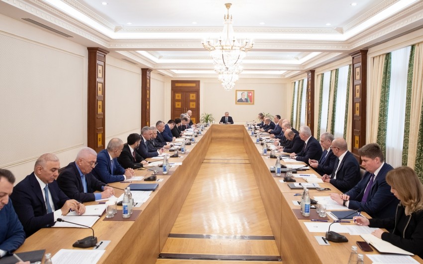 Daha sonra iclasın gündəliyinə uyğun olaraq, “Azərbaycan Respublikasının işğaldan azad edilmiş ərazilərinə Böyük Qayıdışa dair I Dövlət Proqramı”nın icrası çərçivəsində Qarabağ və Şərqi Zəngəzur iqtisadi rayonlarında şəhərsalma fəaliyyəti, o cümlədən şəhərlərin və digər yaşayış məntəqələrinin yenidən qurulması, bərpası, nəqliyyat infrastrukturunun yaradılması, rabitə xidmətinin təşkili, eyni zamanda, azad edilmiş ərazilərin iqtisadi dayanıqlığının təmini, əhalinin məskunlaşması və məşğulluq məsələləri ilə bağlı görülən işlər üzrə məruzələr dinlənilib.