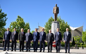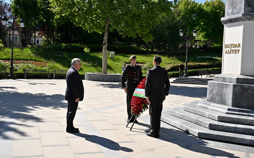 Baş nazir Əli Əsədov Ümummilli Lider Heydər Əliyevin abidəsini önünə əklil qoyub. (Report)