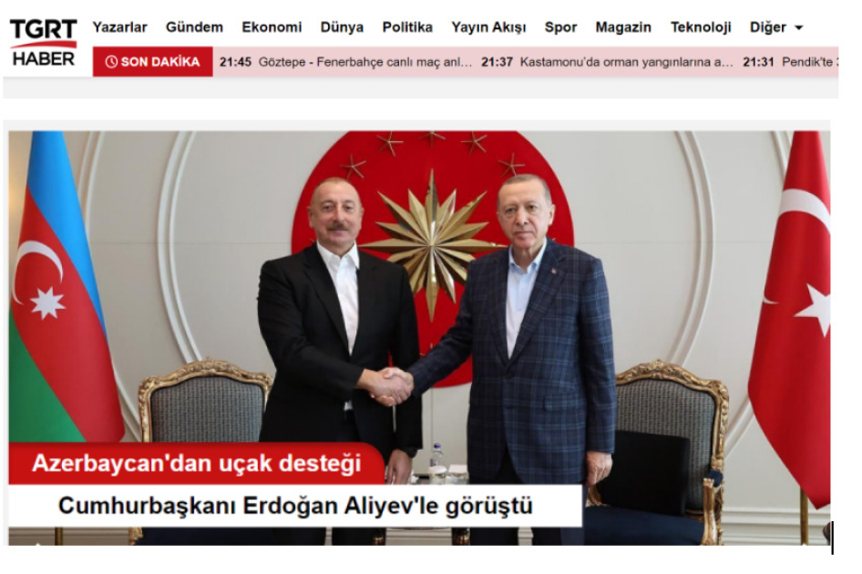 İki qardaş ölkə liderinin telefon danışığı Türkiyə ictimaiyyətinə “Azərbaycan yenidən qardaşlığını nümayiş etdirdi!”, “Qardaşlıq əlaqələri məhz belə günlərdə özünü göstərir”, “Azərbaycan yanğınların söndürülməsinə yardım göndərir”, “Azərbaycan Türkiyəyə amfibiya təyyarəsi göndərir”, “Azərbaycan meşə yanğınlarına qarşı Türkiyəyə kömək edir” kimi sərlövhələri ilə təqdim olunub.