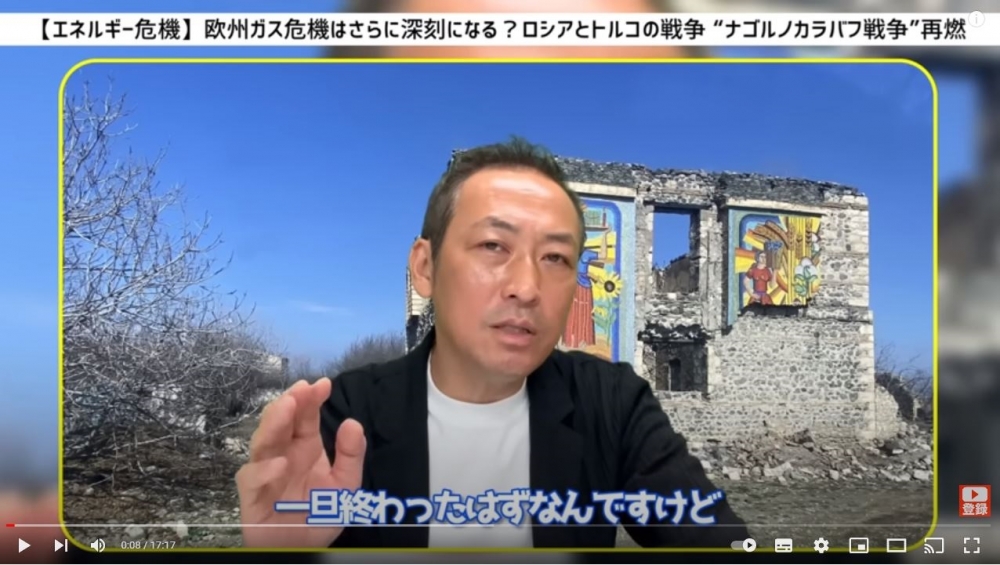 “Söndürülmüş od yenidən alovlanır” adlı verilişdə kanalın prodüseri və aparıcısı Kazuyasu İşida yapon izləyicilərə avqustun əvvəllərində Rusiya sülhməramlılarının müvəqqəti nəzarətində olan Azərbaycan ərazisində erməni terrorçularının törətdiyi təxribat və nəticədə bir azərbaycanlı hərbçinin şəhid olması barədə məlumat verib. Vurğulayıb ki, Ermənistan Rusiya və Azərbaycan ilə imzaladığı üçtərəfli Bəyanatın müddəalarını pozur, bununla da rəsmi Bakının sülh müqaviləsi imzalanması və regional əməkdaşlığa dair təşəbbüslərinə əngəl törətməyə çalışır. Aparıcı qeyd edib ki, bu terrora cavab olaraq Azərbaycan Ordusu dərhal “Qisas” əməliyyatı keçirib və qanunsuz erməni silahlı dəstələrinin yerləşdiyi bir neçə yüksəkliyi nəzarət altına alıb. Vurğulayıb ki, Azərbaycan haqlı olaraq qanunsuz erməni silahlı dəstələrinin öz ərazisindən çıxarılmasını tələb edir.