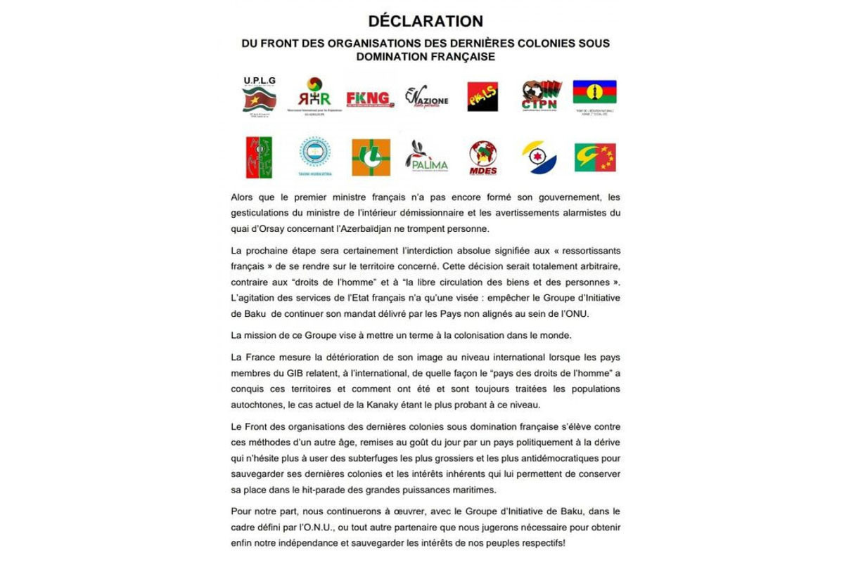Qeyd edək ki, bəyanatı Fransa müstəmləkəsi altında olan ərazilərdəki 14 siyasi hərəkat rəhbəri imzalayıb.