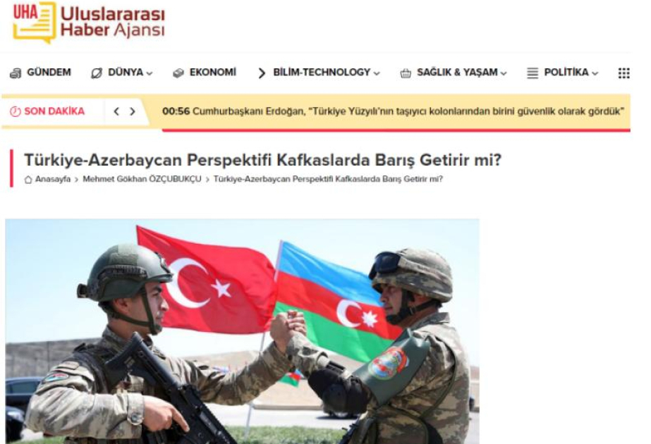 Bu fikri UDİAD Ankara Diplomatik Araşdırmalar Cəmiyyəti sədrinin müavini Mehmet Gökhan Özçubukçu UHA agentliyinin dərc etdiyi “Türkiyə-Azərbaycan perspektivi Qafqaza sülh gətirəcəkmi?” sərlövhəli analitik məqaləsində bildirib.