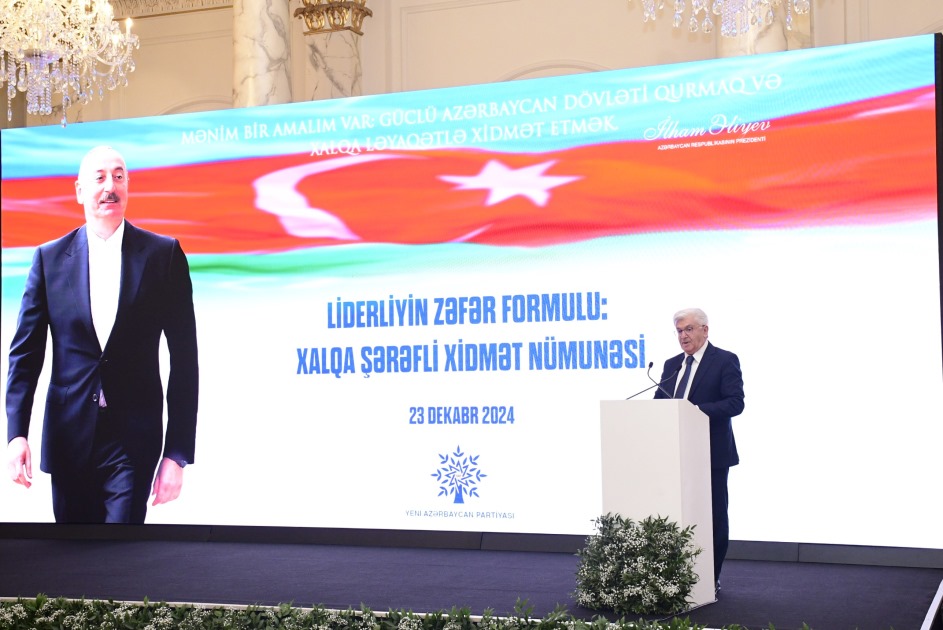 Tədbir Yeni Azərbaycan Partiyasının Himninin səsləndirilməsi ilə başa çatıb. (AZERTAC)