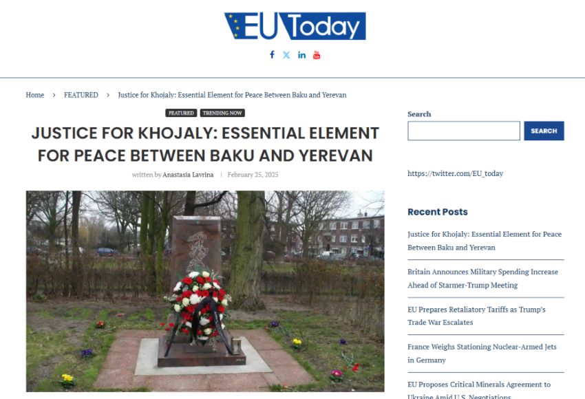 Məqalənin sonunda qeyd olunur: “Azərbaycan xalqına qarşı törədilmiş soyqırımı ilə bağlı beynəlxalq səviyyədə məlumatlılığın artırılması və Xocalı faciəsi qurbanlarının parlaq xatirəsinin əbədiləşdirilməsi məqsədilə Prezident İlham Əliyev 2025-ci il fevralın 25-də Xocalı şəhərində “Xocalı Soyqırımı Memorial Kompleksinin yaradılması haqqında” Sərəncam imzalayıb. Bu təşəbbüs həqiqətin ört-basdır edilməyəcəyini və cəzasızlığın qəbuledilməz olduğunu simvollaşdırır. Həqiqəti dərk etmək təkcə keçmişi xatırlamaq deyil, həm də nifrətdən, cəzasızlıqdan və zorakılıqdan uzaq gələcəyin əsasıdır. Yalnız etiraf, cavabdehlik və barışıq yolu ilə Cənubi Qafqaz regionunda davamlı sülhə və sabitliyə nail oluna bilər”. (AZƏRTAC)
