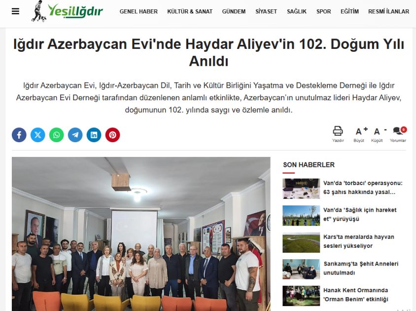 Qardaş Türkiyənin media orqanları ölkənin müxtəlif yerlərində, o cümlədən Ankarada, Qarsda, İqdırda, Kütahyada Heydər Əliyevin xatirəsinə həsr olunmuş tədbirlər barədə geniş ictimaiyyətə məlumat verib. Materiallarda Ümummilli Liderin Türkiyə ilə Azərbaycan arasındakı dostluq və qardaşlığa verdiyi misilsiz töhfələrdən bəhs edilir.