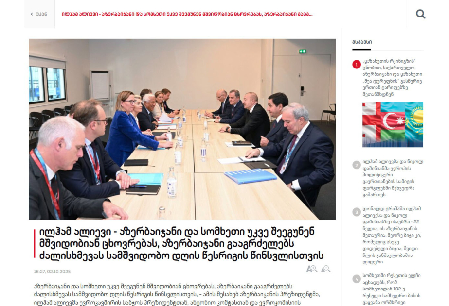 Azərbaycan və gürcü dilində yayımlanan xəbərdə dövlətimizin başçısının Azərbaycan ilə Ermənistan arasındakı sülh razılaşmasına dair fikirləri əksini tapıb.
