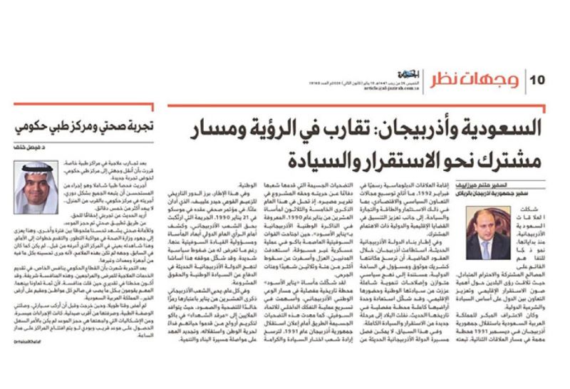 Eyni zamanda, yazıda vurğulanır ki, müasir Azərbaycan dövləti məhz bu tarixi sınaqlardan keçərək beynəlxalq arenada etibarlı və məsuliyyətli tərəfdaş kimi mövqeyini möhkəmləndirib. Bu kontekstdə Səudiyyə Ərəbistanı ilə Azərbaycan arasında münasibətlərin qarşılıqlı hörmət və ortaq maraqlar əsasında inkişaf etdiyi qeyd olunur. Krallığın 1991-ci ilin dekabrında Azərbaycanın müstəqilliyini erkən tanıması və 1992-ci ilin fevralında diplomatik münasibətlərin qurulması ikitərəfli əməkdaşlığın genişlənməsi üçün mühüm zəmin yaradıb. (AZƏRTAC)
