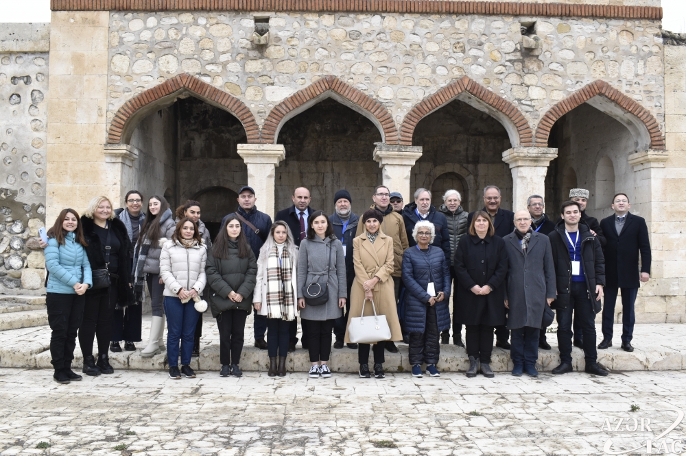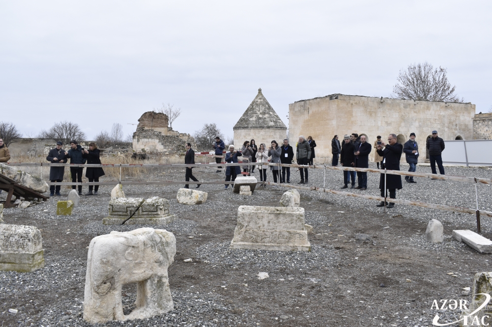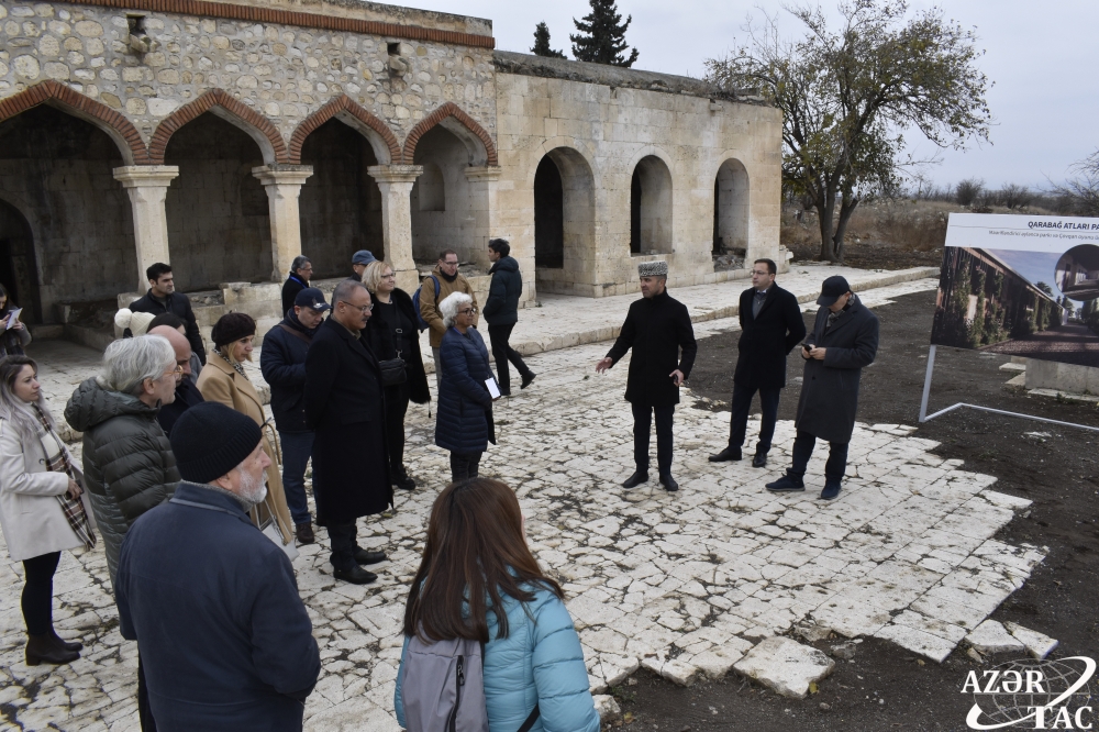Nümayəndə heyətini Qarabağ iqtisadi rayonuna daxil olan işğaldan azad edilmiş ərazilərdə (Şuşa rayonu istisna olmaqla) Azərbaycan Respublikası Prezidentinin xüsusi nümayəndəliyinin böyük məsləhətçisi Araz İmanov, UNESCO üzrə Milli Komissiyanın, ICOMOS Azərbaycan Milli Komitəsinin, ICOM Azərbaycan Milli Komitəsinin, ADA Universitetinin nümayəndələri müşayiət ediblər.