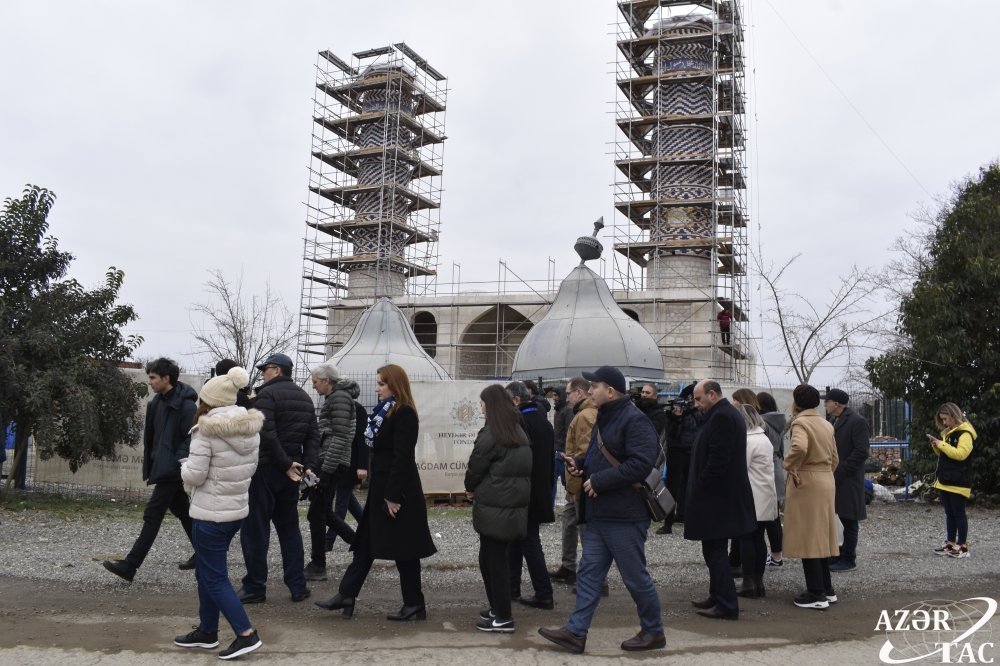 Səfər çərçivəsində Ağdamda Ermənistan tərəfindən işğal dövründə dağıdılmış yaşayış binalarına, mülki obyektlərə, dini, mədəni və tarixi abidələrə, o cümlədən İmarət kompleksinə, Ağdam Cümə məscidinə, Dram teatrının binasının qalıqlarına və yerlə-yeksan edilmiş Şəhidlər xiyabanına baxış keçirilib. Qonaqlara Ağdamın tarixi, indiki vəziyyəti, burada törədilən erməni faşizmi barədə ətraflı məlumat verilib. Bildirilib ki, Ermənistanın işğalına qədər Ağdam nəinki Qarabağ bölgəsinin, eləcə də respublikanın ən böyük, inkişaf etmiş şəhərlərindən idi. Burada sənaye və kənd təsərrüfatı inkişaf etmişdi. Ermənilər 1993-cü il iyulun 23-də Ağdamı işğal etdikdən sonra Ağdam şəhərində və rayonun kəndlərində yaşayış evlərini, ictimai binaları, məktəbləri, mədəniyyət ocaqlarını, uşaq bağçalarını, xəstəxanaları, istehsalat müəssisələrini talan edib, dağıdıb və yandırıblar. Ağdamda qəbiristanlıqlar, tarixi-mədəni abidələr də erməni vandalizminə məruz qalıb. Vaxtilə Azərbaycanın ən gözəl şəhərlərindən olan Ağdamın yerində indi talan edilərək viranəyə çevrilmiş xarabalıqlar qalıb.