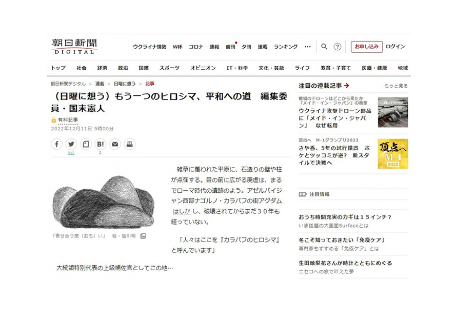 Məqalədə I Qarabağ müharibəsinin tarixi, qonşu Ermənistanın Azərbaycana qarşı əsassız ərazi iddiaları nəticəsində baş verən faciə barədə ətraflı bəhs olunur. Bildirilir ki, ötən əsrin 80-ci illərinin sonları, 90-cı illərinin əvvəllərində baş verən qanlı müharibə nəticəsində Ağdamın 40 mindən çox yerli sakini öz ata-baba yurdlarını tərk etməyə məcbur qalıb. Ermənistan Ağdamı işğal etsə də, bu şəhərdə məskunlaşmayıb. Buradakı infrastrukturu məhv edərək, şəhəri xarabalığa çeviriblər. K.Narito Ağdamın belə uzun müddət dağıntılar içərisində qalmasının ermənilərin günahı olduğunu, buna görə onların məsuliyyət daşıdığını xüsusi vurğulayır. Bildirir ki, yalnız 2020-ci ilin payızında baş verən II Qarabağ müharibəsindən sonra Azərbaycanın Qələbəsi bu torpaqların yenidən canlanmasına səbəb olub. Qeyd edilir ki, Azərbaycan neft və qaz ixracından əldə etdiyi sərvəti məhz işğaldan azad olunan yaşayış məntəqələrinin bərpasına yönəldir, burada “yaşıl enerji”dən istifadə edən ağıllı şəhər və kəndlər inşa edir.
