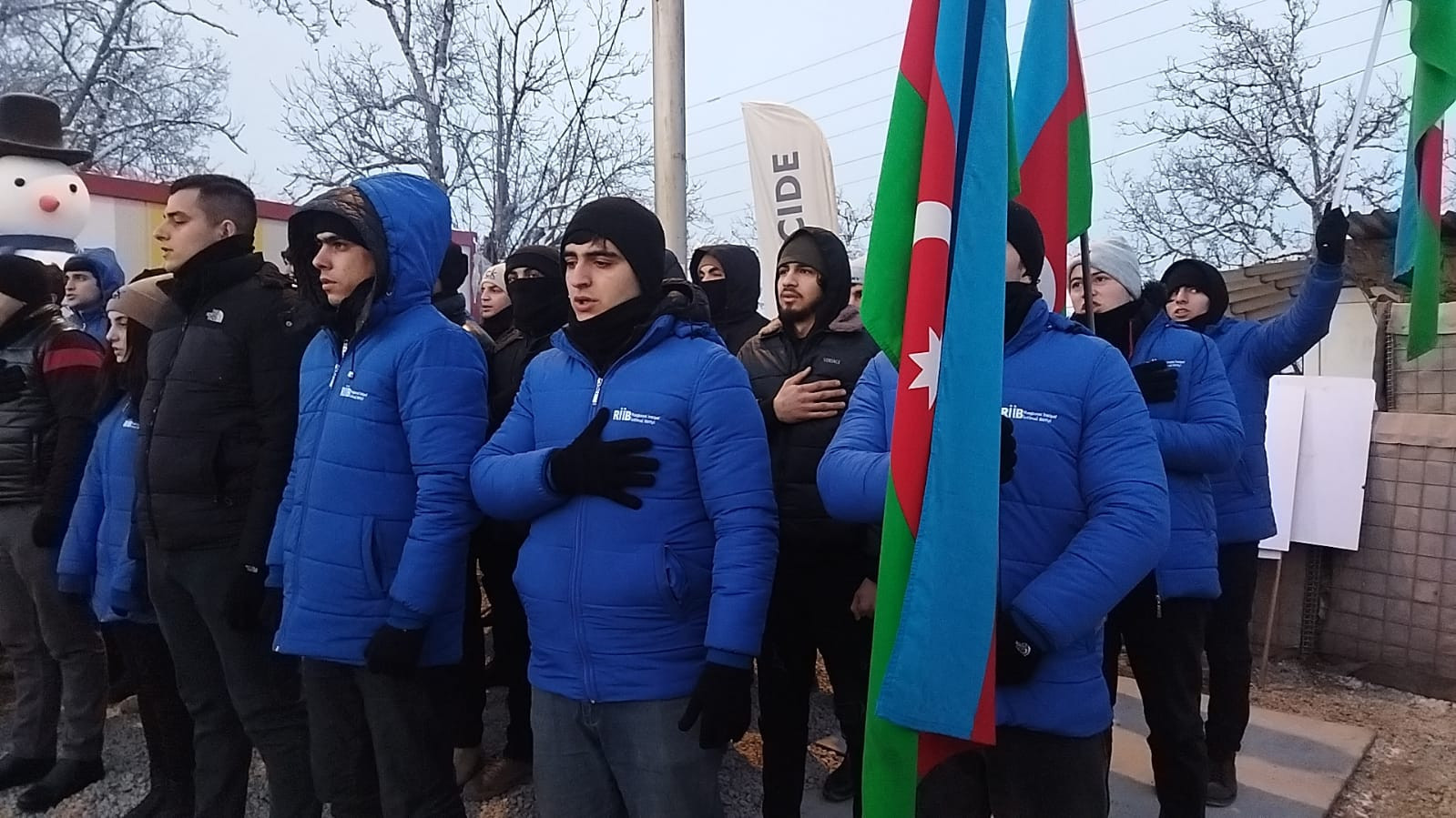 Aksiya iştirakçıları günə Azərbaycan Respublikasının Dövlət Himninin səsləndirilməsi ilə başlayıb.