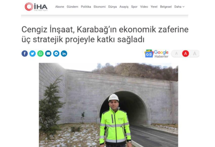 Bu barədə Türkiyənin “İhlas” xəbər agentliyinin “Cengiz İnşaat” tikinti şirkətinin işğaldan azad edilmiş Azərbaycan ərazilərində həyata keçirdiyi strateji əhəmiyyətli layihələr barədə məqaləsində bəhs edilib.