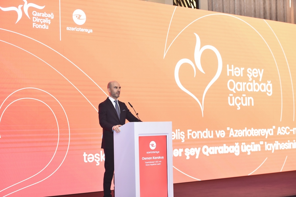 “Azərlotereya” ASC-nin İdarə Heyətinin sədri Osman Karakuş “Hər şey Qarabağ üçün” layihəsinin həmrəyliyimizin bariz nümunəsi olduğunu vurğulayıb.