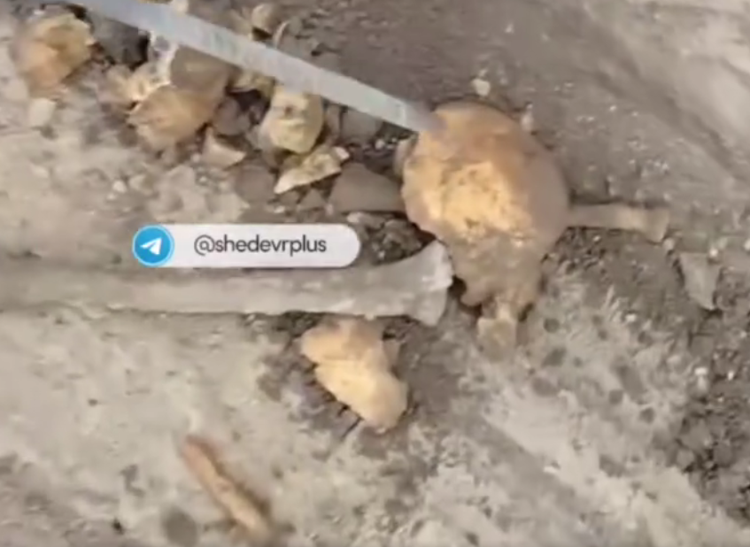 "Vətən səsi" xəbər verir ki, qazıntı işləri zamanı torpağın dərin qatlarından insana məxsus baş və qol sümükləri tapılıb. Həmin faktı mobil telefonu ilə videoçəkilişlərlə qeydə alan şahidlərin bildirdiyinə görə, aşkar edilən kəllə sümüyündə çat izləri var. İlkin ehtimalara görə aşkar olunmuş insan sümükləri qədim alban qəbirlərinə aiddir. Bu, sümüklərin torpağın dərin qatında yerləşməsi və bir qisminin çürüntüyə daha çox məruz qalması ilə izah edilir.