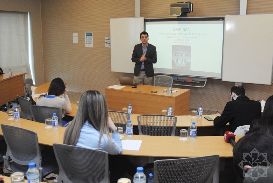 ADA Universiteti İnkişaf və Diplomatiya İnstitutunun Enerji və Dayanıqlı İnkişaf Proqramının baş elmi işçisi, təlimçi Əhməd Hümbətov isə “Azərbaycanın enerji siyasəti: neft və qaz kəmərlərindən yaşıl enerji dəhlizlərinə doğru”, “İqlim dəyişikliyi dalğası ilə hərəkət etmək: Azərbaycan bunun öhdəsindən necə gəlir?” mövzusunda sessiyalarda jurnalistlərə ətraflı məlumat verib.