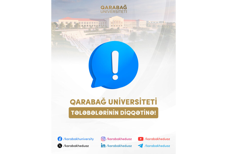 Universitetə gəliş tarixləri barədə dəqiq məlumat tələbələrə müvafiq vatsap qrupları üzərindən təqdim ediləcək. (AZƏRTAC)