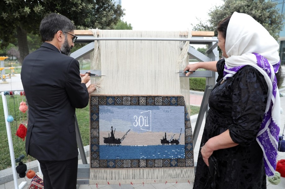“Əsrin müqaviləsi”nin ölkəmizin hərtərəfli inkişafında önəmli rola malik olduğunu vurğulayan İdarə Heyətinin sədri bu əlamətdar hadisənin 30-cu ildönümü münasibətilə ekskluziv limitli kolleksiyaya daxil olan müxtəlif ölçülü xalçaların hazırlandığını diqqətə çatdırıb. SOCAR-la “Azərxalça” arasında səmərəli əməkdaşlığın mövcud olduğunu deyərək birgə fəaliyyətin gələcəkdə də uğurla davam etdiriləcəyinə inamını ifadə edib.