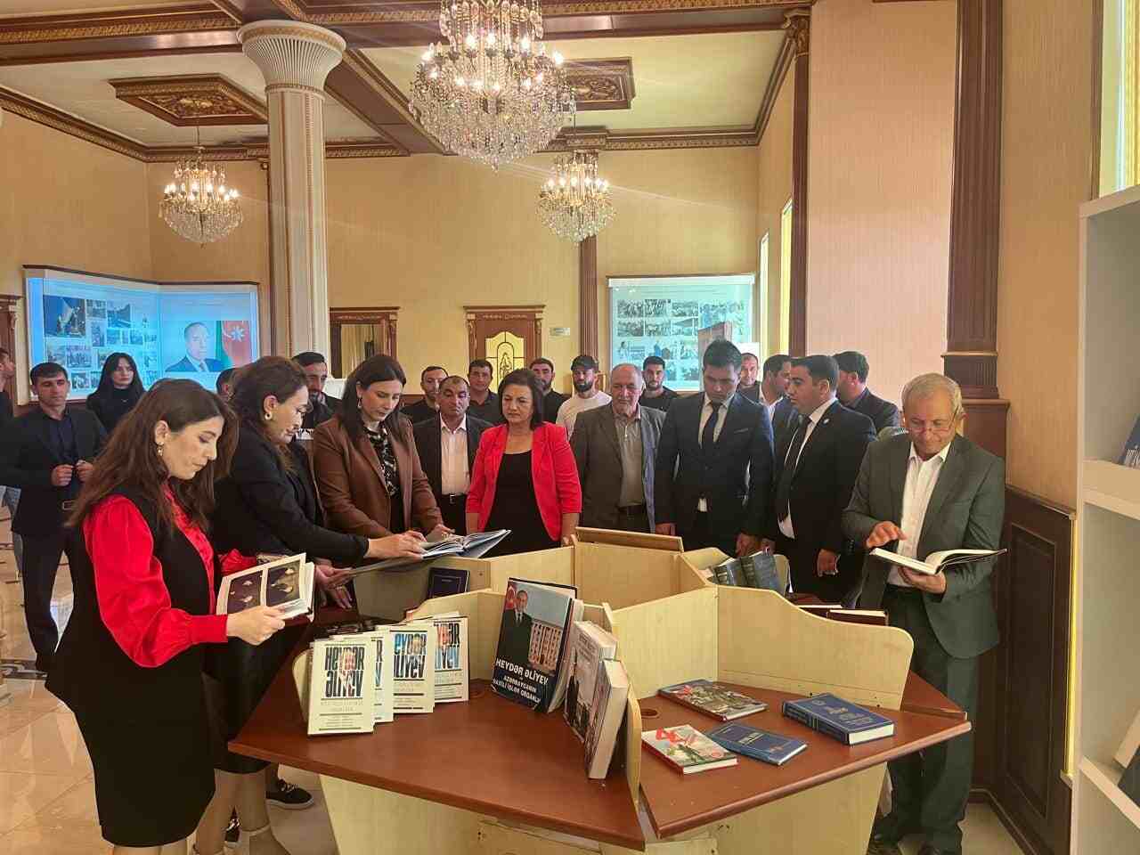 Daha sonra iştirakçılar tərəfindən Ulu Öndər Heydər Əliyevin həyat və fəaliyyətindən bəhs edən foto guşələrə, kitab sərgisinə baxış keçirilib.