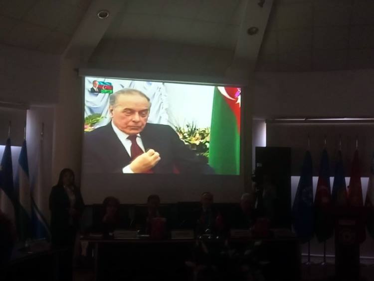 Tədbir çərçivəsində Ulu Öndər Heydər Əliyevin irsi mövzusunda videoçarx nümayiş olunub. (AZƏRTAC)