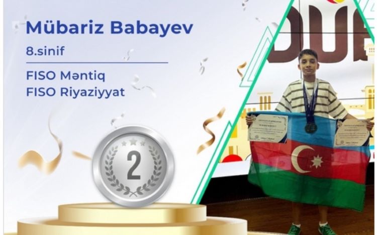 Səkkizinci sinif şagirdi Mübariz Babayev həm "FISO məntiq", həm də "FISO riyaziyyat" kateqoriyalarında yüksək nəticə göstərərək gümüş medal qazanıb və Azərbaycanı uğurla təmsil edib.
