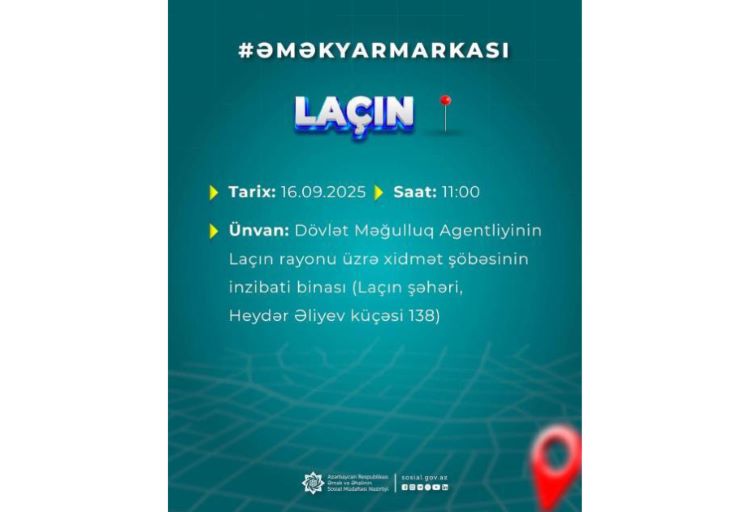 Nazirlliyin İctimaiyyətlə əlaqələr şöbəsindən verilən məlumata görə, yarmarka sentyabrın 16-sı saat 11:00-da agentliyin Laçın rayonu üzrə xidmət şöbəsinin inzibati binasında (Laçın şəhəri, Heydər Əliyev küçəsi 138) təşkil olunacaq.