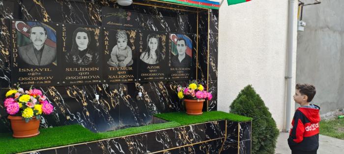 Həmin raket zərbəsi zamanı digər bir evin sakinləri - Suliddin Əsgərov, oğlu Bəxtiyar Əsgərov, qızı Sevil Əsgərova, nəvələri 18 yaşlı Nigar və 10 aylıq Narin də həlak olublar. Suliddin kişinin nəvəsi, 9-cu sinif şagirdi Amin Əsgərov isə ağır yaralanıb: “Raket partlayanda məni külək kimi yerə çırpdı. Sonrasını xatırlamıram. Ayılanda daşların altında idim. Qolumu çıxarmağa gücüm çatmırdı. Sonra FHN işçiləri məni gördülər və oradan çıxardılar”.