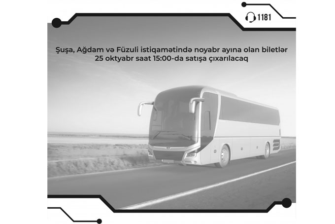Azərbaycan Yerüstü Nəqliyyat Agentliyi vətəndaşlara bir daha tövsiyə edir ki, sosial şəbəkələrdə Şuşa istiqamətində “turlar” təşkil edilməsi ilə bağlı elanları ciddi qəbul etməsinlər, öz sənədlərini elanlarda gördükləri əlaqə vasitələrinə göndərməsinlər. Biletləri heç kimə əlavə vəsait ödəmədən özləri alsınlar.